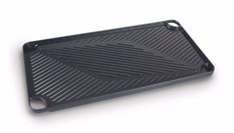 The Kampa Steakhouse Griddle is ridged one side, smooth the other. Fantastically simple way to grill your food when all you have is a two-ring cooker. The non-stick griddle is easy to clean and suitable for most double burner camping stoves. Cook up a treat on holiday or at home. Ridged one side, smooth the other. A fantastically simple way to grill your food with only a two-ring cooker.